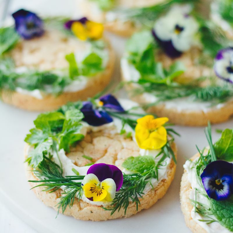 Ätbara blommor, till exempel penséer